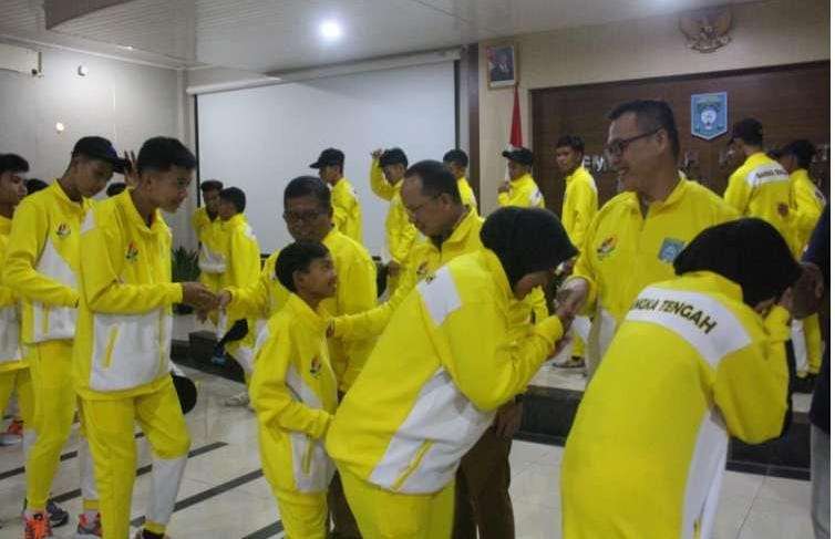 Sebanyak 49 atlet, 13 pelatih, dan 15 official kontingen Bangka Tengah resmi dilepas oleh bupati di Ruang Rapat Besar Kantor Sekretariat Bangka Tengah, Senin (16/06/25). Turut mendampingi, Kepala Dinbudparpora Bateng, Zainal, Ketua KONI Bateng, dan perwakilan Polres Bangka Tengah.