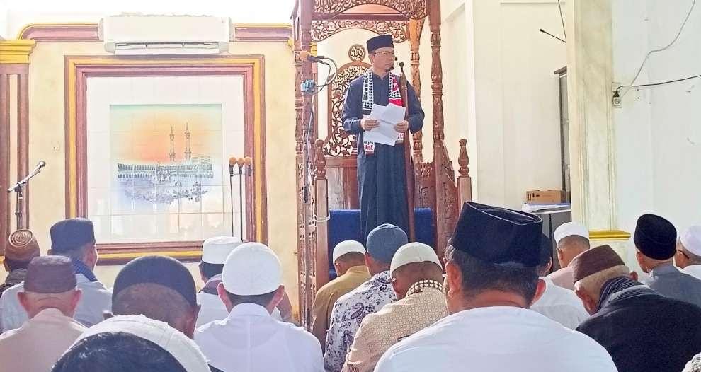 Dalam khutbahnya, Algafry mengajak jamaah untuk bersyukur atas nikmat Allah SWT serta senantiasa mempersiapkan diri menghadapi kehidupan akhirat.