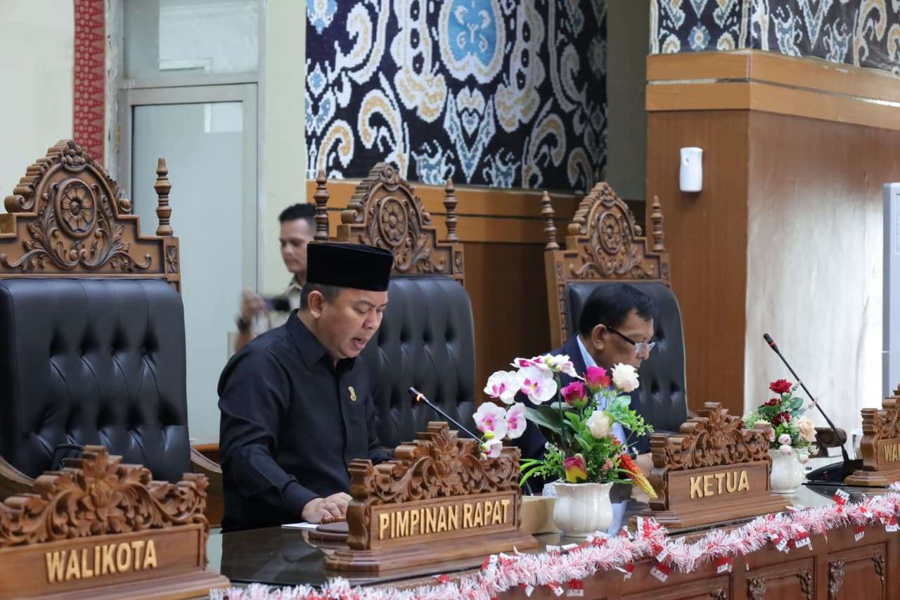 BABEL.PANGKALPINANG.SKT.COM — Wali Kota Pangkalpinang Prof Saparudin, menyampaikan pernyataan resmi dalam Rapat Paripurna DPRD Kota Pangkalpinang terkait Penandatanganan Nota Kesepakatan Rancangan Awal Rencana Pembangunan Jangka Menengah Daerah (RPJMD) Kota Pangkalpinang Tahun 2025–2029, Senin (8/12/25).