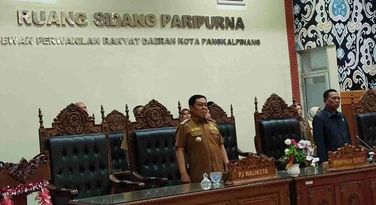 BABEL.PANGKALPINANG.SKT.COM – Pejabat (Pj) Wali Kota Pangkalpinang, M. Unu Ibnudin, menghadiri Rapat Paripurna ke-19 Masa Persidangan III DPRD Kota Pangkalpinang, Senin (7/7/25).